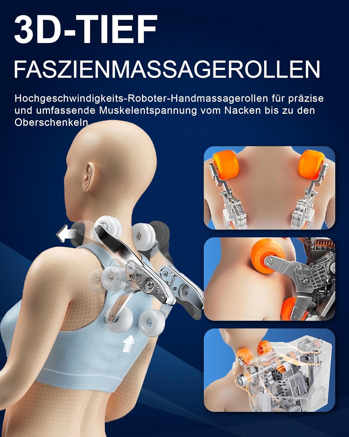 - 3D-Massagehände mit Knet-, Klopf-, Streich- und Walktechniken für eine professionelle Massage