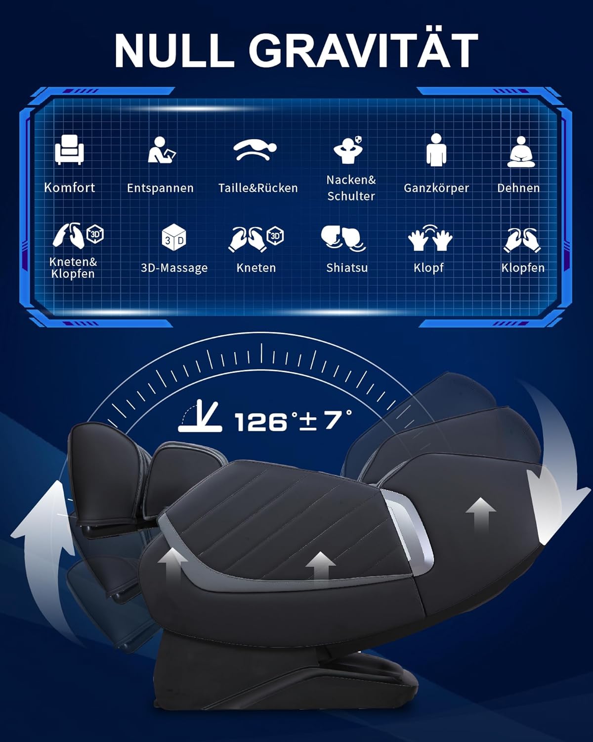 Ein langer Arbeitstag, Stress im Alltag oder körperliche Anspannung – unser Körper sehnt sich nach Erholung, die tief in die Muskulatur eindringt und den Geist zur Ruhe kommen lässt. Der MeitFith 302BL ist kein gewöhnlicher Massagesessel. Er ist ein ganzheitliches Entspannungssystem, das die Technik professioneller Masseure in Ihr Zuhause bringt. Mit fortschrittlicher 3D-Massage-Technologie, einer ergonomischen Zero-Gravity-Position und einer Vielzahl an Funktionen für den gesamten Körper verwandelt dieser Sessel jeden Raum in ein persönliches Wellness-Refugium.
