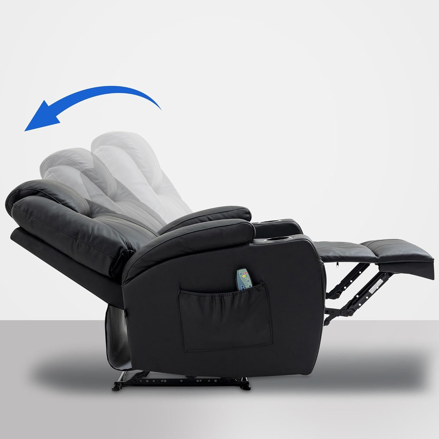 Die Montage ist kinderleicht und erfordert keinerlei Werkzeug. Alle Teile sind vormontiert – es gilt lediglich, die Fernbedienung anzuschließen und den Stecker in die Steckdose zu stecken. Innerhalb weniger Minuten ist der Sessel betriebsbereit und kann genutzt werden. Für zusätzlichen Stauraum sorgt eine praktische Tasche an der Seite, in der Fernbedienung, Zeitschriften oder Fernsehzeitschriften verstaut werden können.