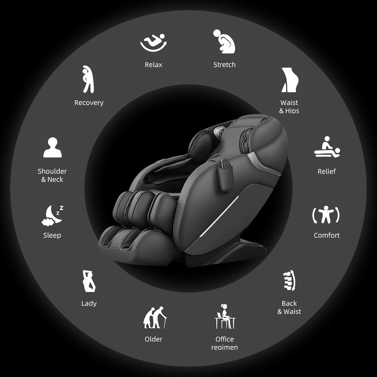 Durch die Kombination aus 3D-Bewegung, SL-Schiene und mehreren Massageprogrammen entsteht ein personalisiertes Massageerlebnis, das sich jederzeit an Ihre Bedürfnisse anpasst. Ob Sie eine sanfte Entspannung nach einem stressigen Tag wünschen oder eine intensive Muskelerholung nach dem Sport – der A-303BK reagiert intelligent und liefert konstant professionelle Ergebnisse.