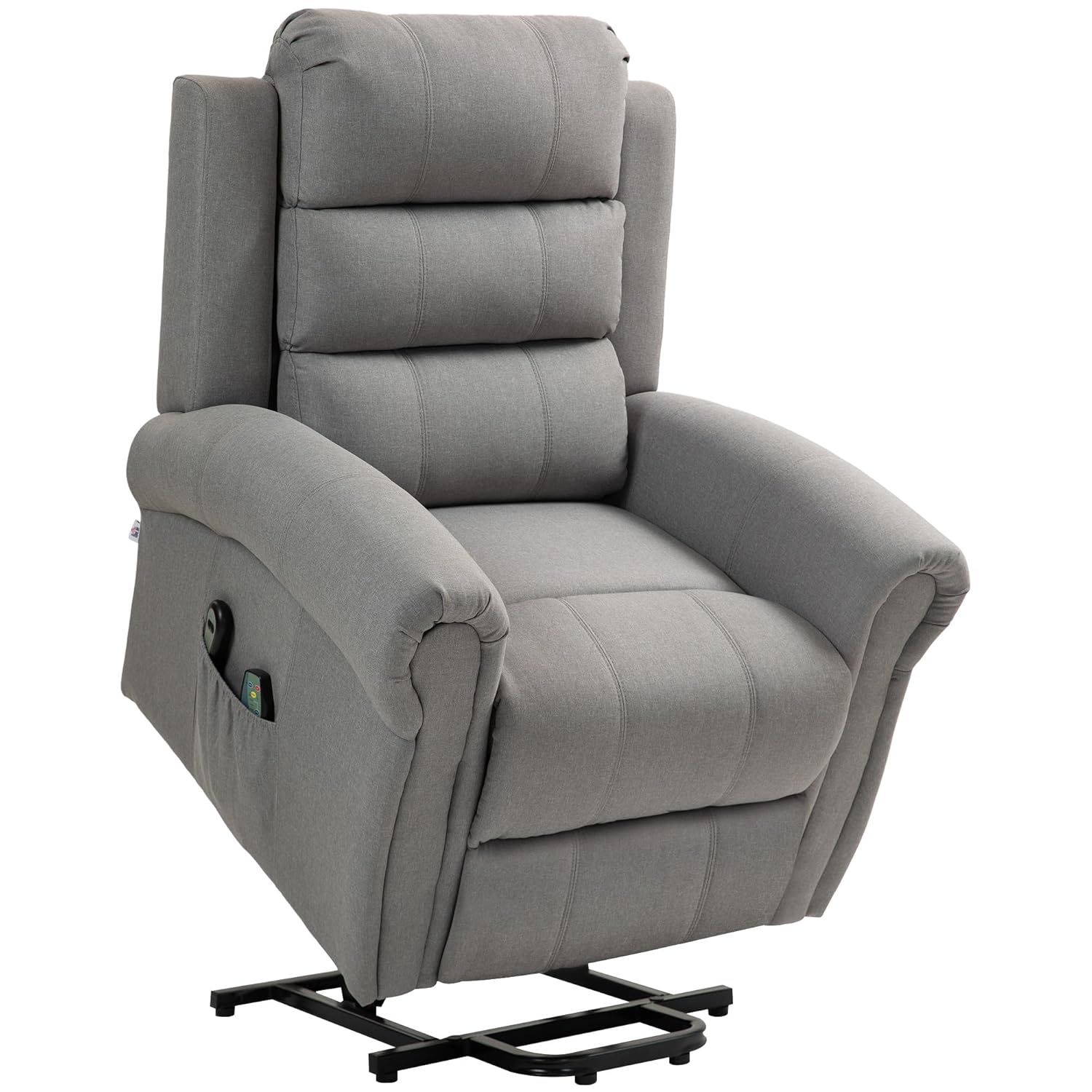 HOMCOM TV-Sessel mit Steighilfe – Elektrischer Relaxsessel mit Liegefunktion, Wärme- und Massagefunktion, Taschenfederkern, Seitentasche und Fernbedienung – Hellgrau