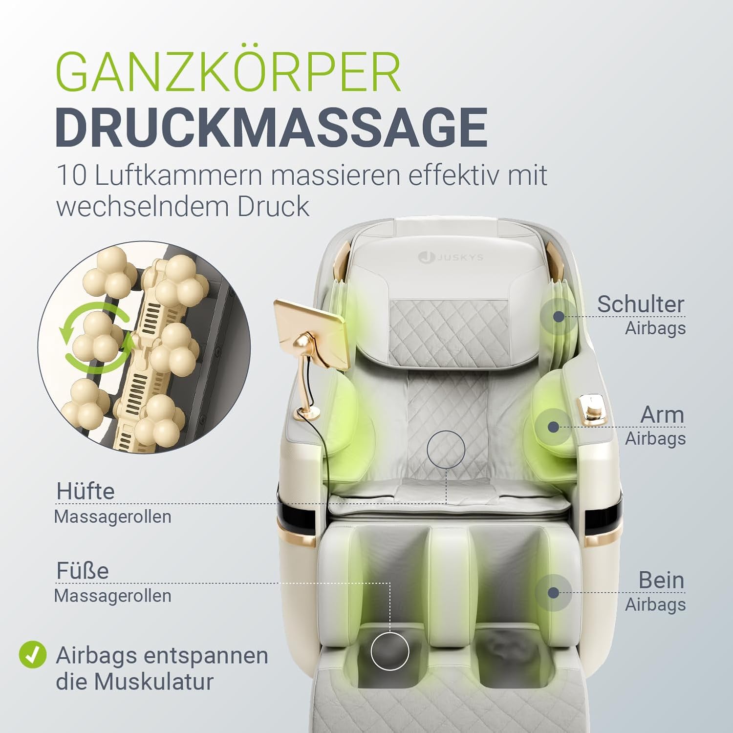 - 10 Airbag-Druckzonen für Ganzkörper-Massage von Schultern bis zu den Füßen