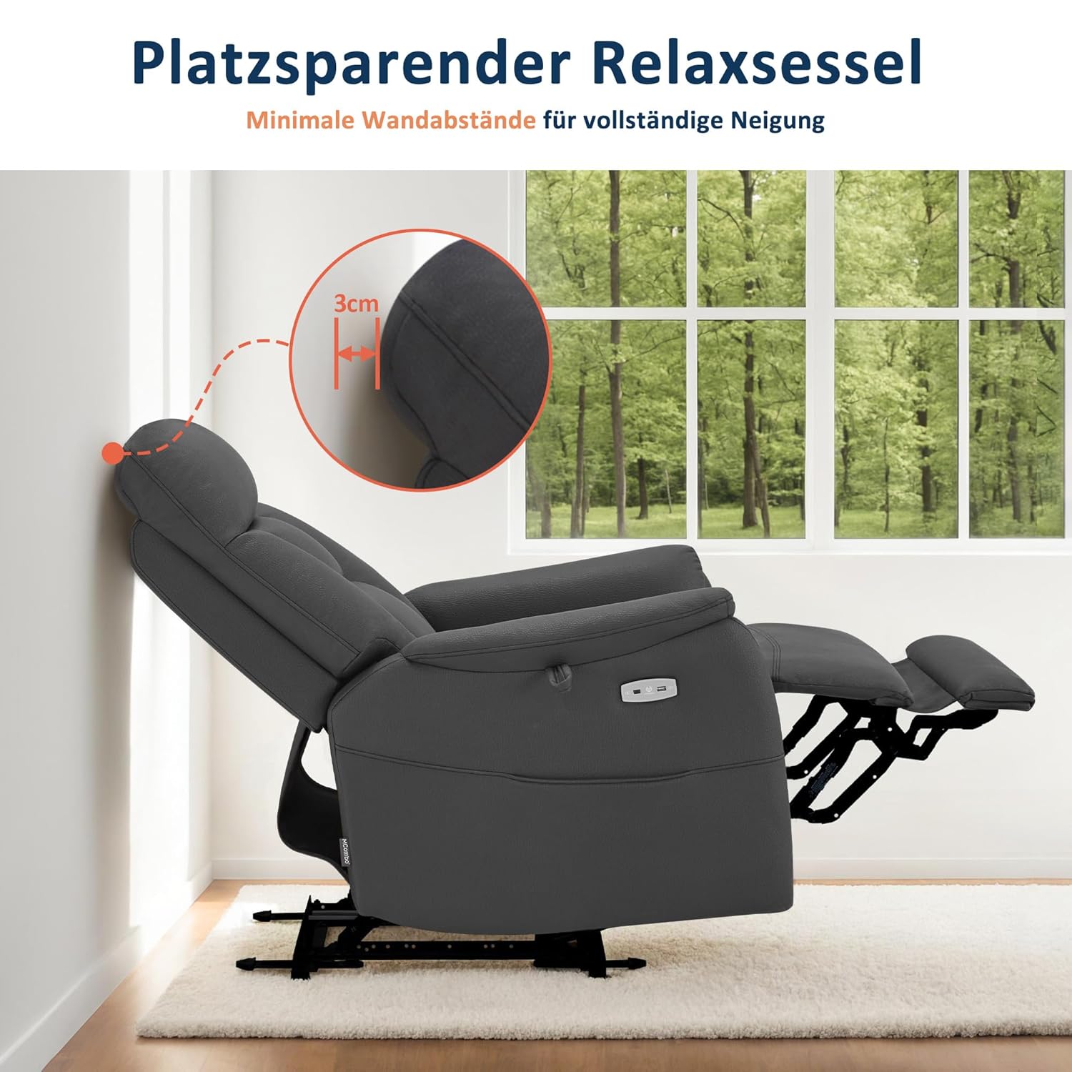 - Elektrische Verstellfunktion per Fernbedienung – stufenlose Anpassung von Rückenlehne und Fußstütze