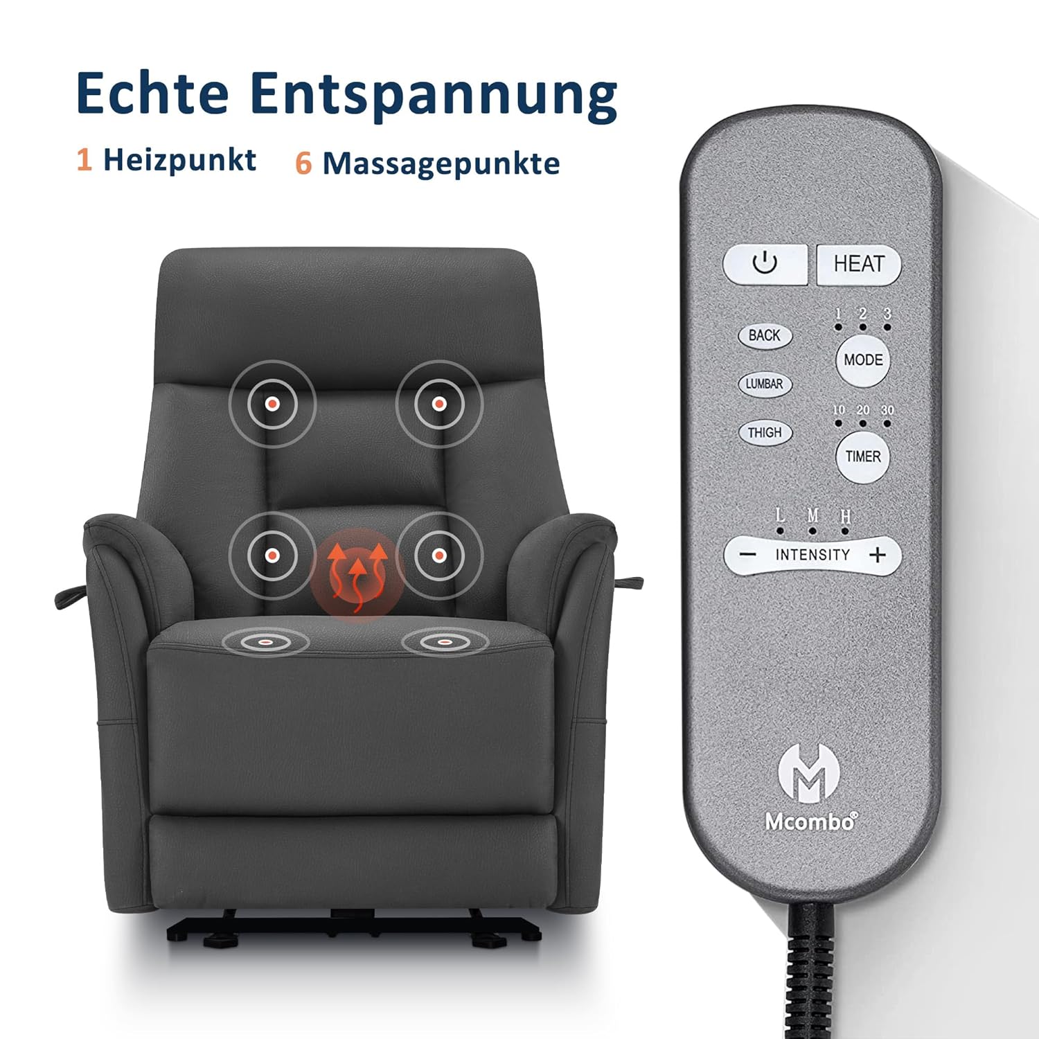 M MCombo E6160 – Elektrisch Höhenverstellbarer TV-Sessel mit Massagefunktion, USB-Anschlüssen & Lendenwirbelkissen – Die Premium-Lösung für maximale Entspannung in beengten Räumen