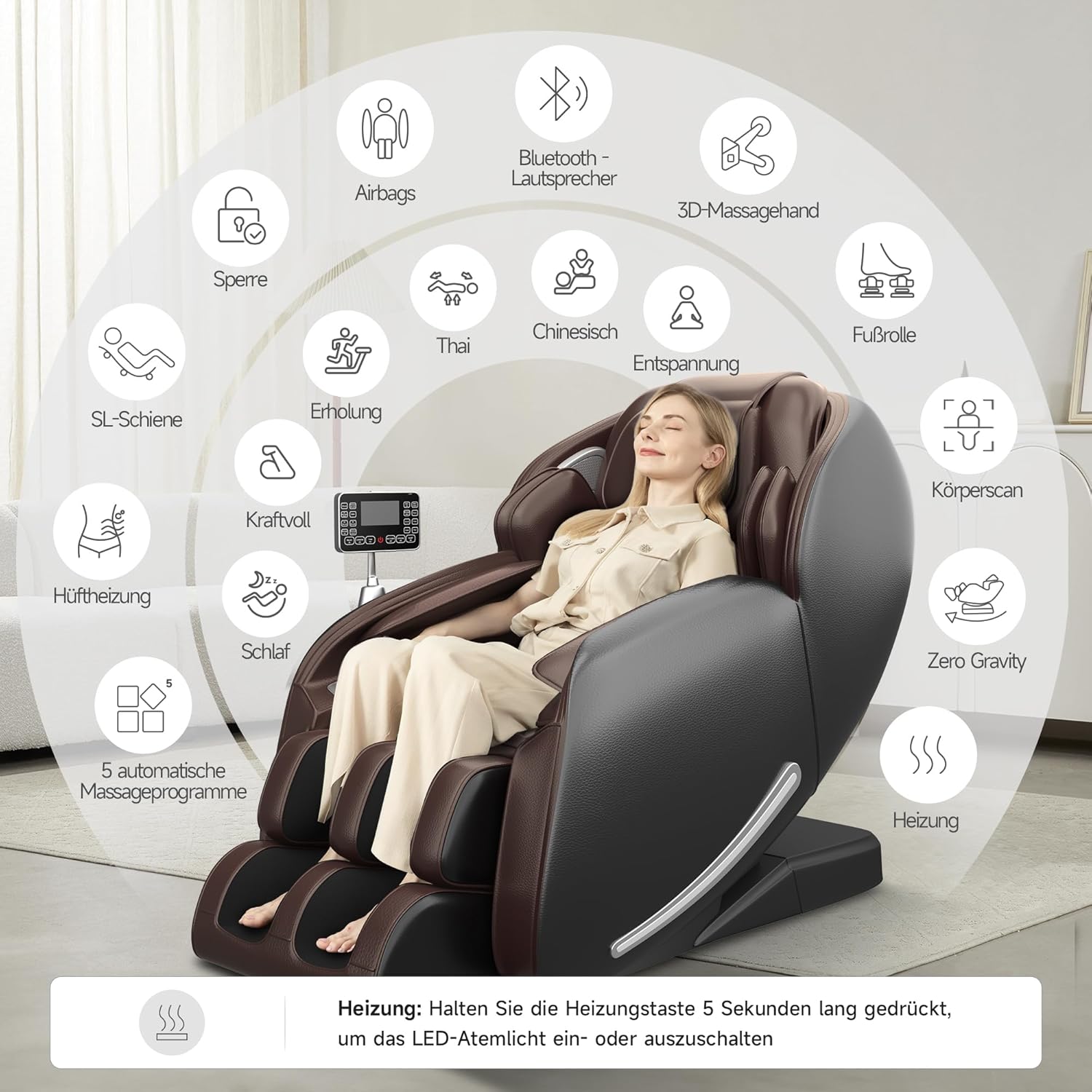 - Wärmefunktion im Rückenbereich für tiefe Muskelentspannung