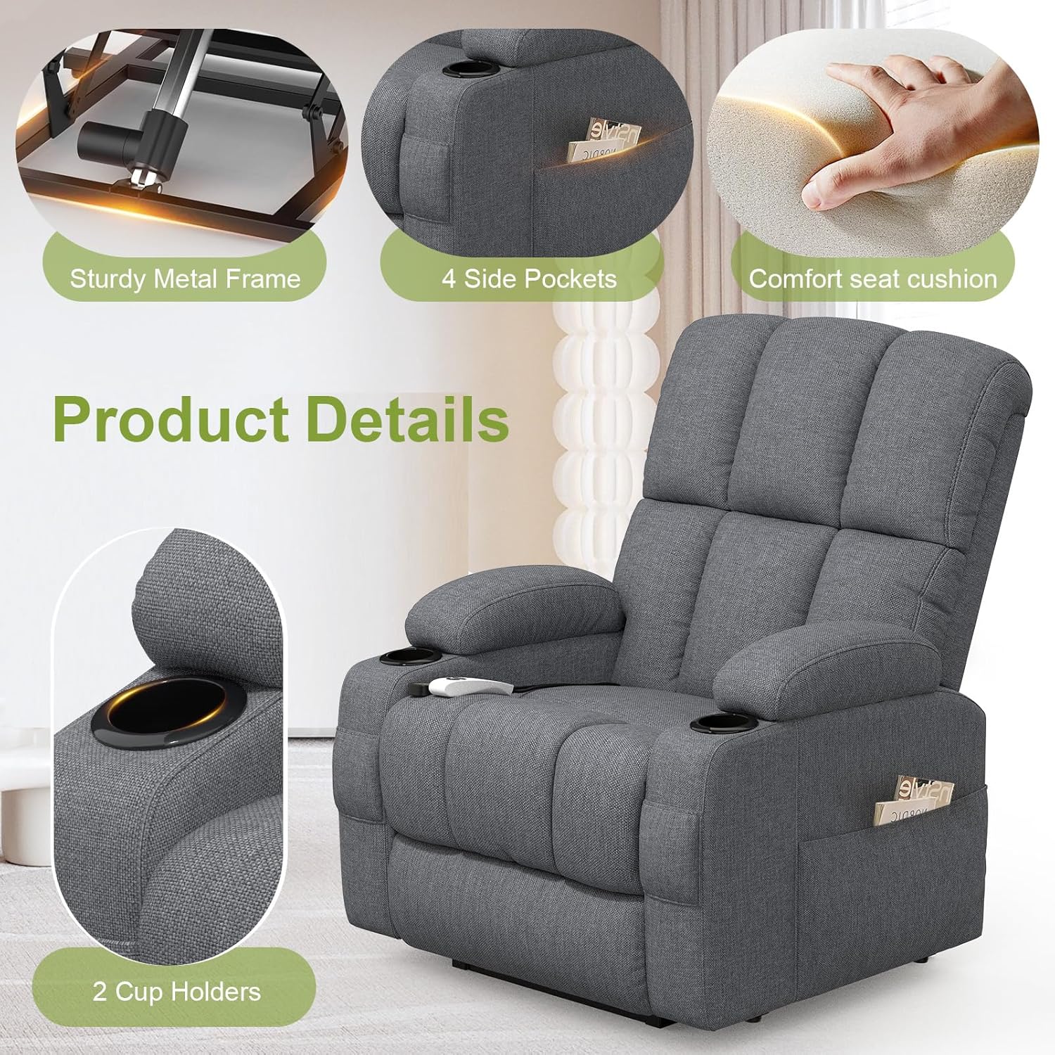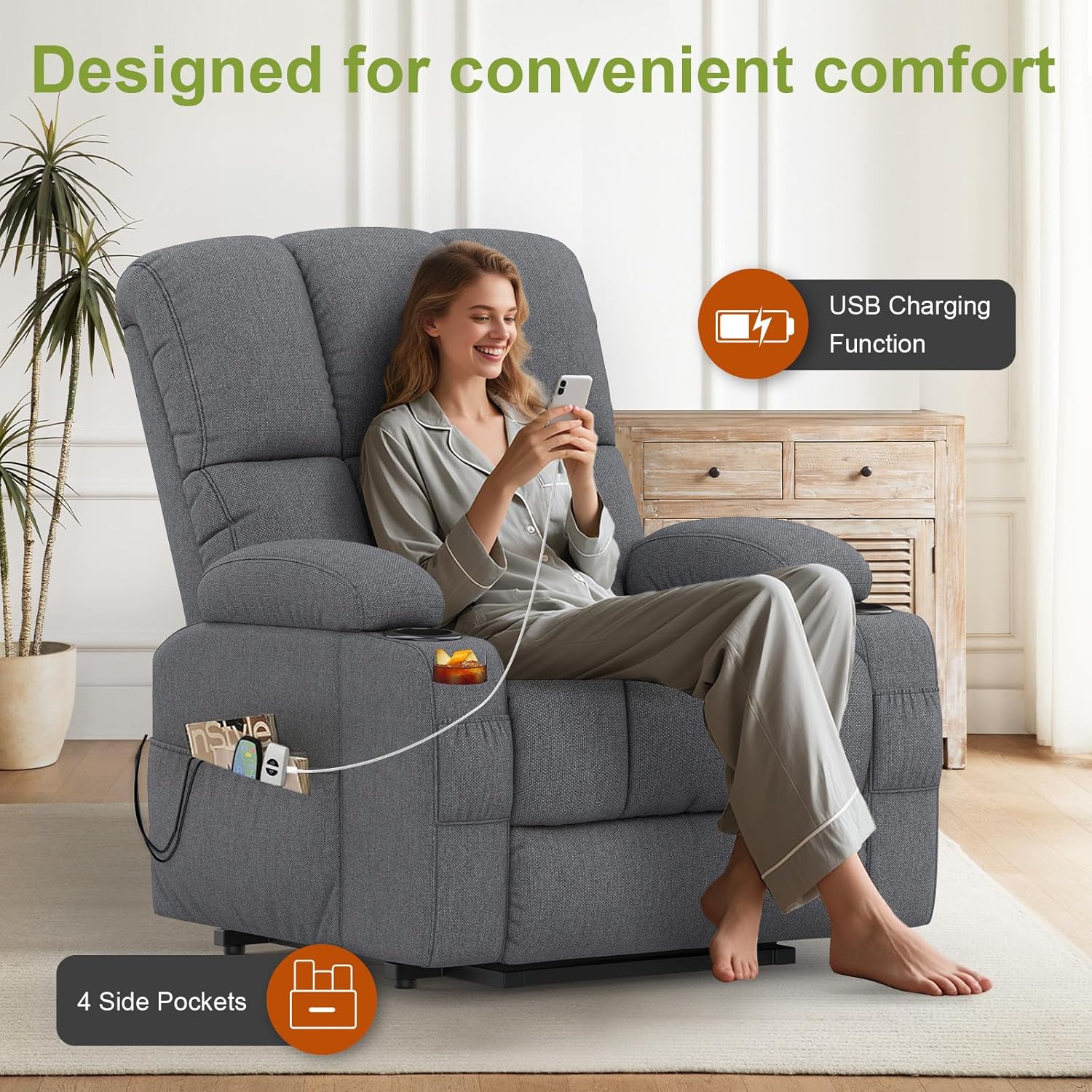 Ob Sie nach einem anstrengenden Tag die Muskulatur lockern möchten, ob ältere Familienmitglieder Unterstützung beim Aufstehen brauchen, oder ob Sie einfach nur ein gemütliches Plätzchen für ein Buch, einen Film oder ein Nickerchen suchen – dieser Stuhl verwandelt jede Alltagssituation in ein Wohlfühlerlebnis. Dank durchdachter Ergonomie, hochwertiger Materialien und intelligenter Zusatzfunktionen wird Ihr Wohnzimmer zum persönlichen Spa-Bereich.