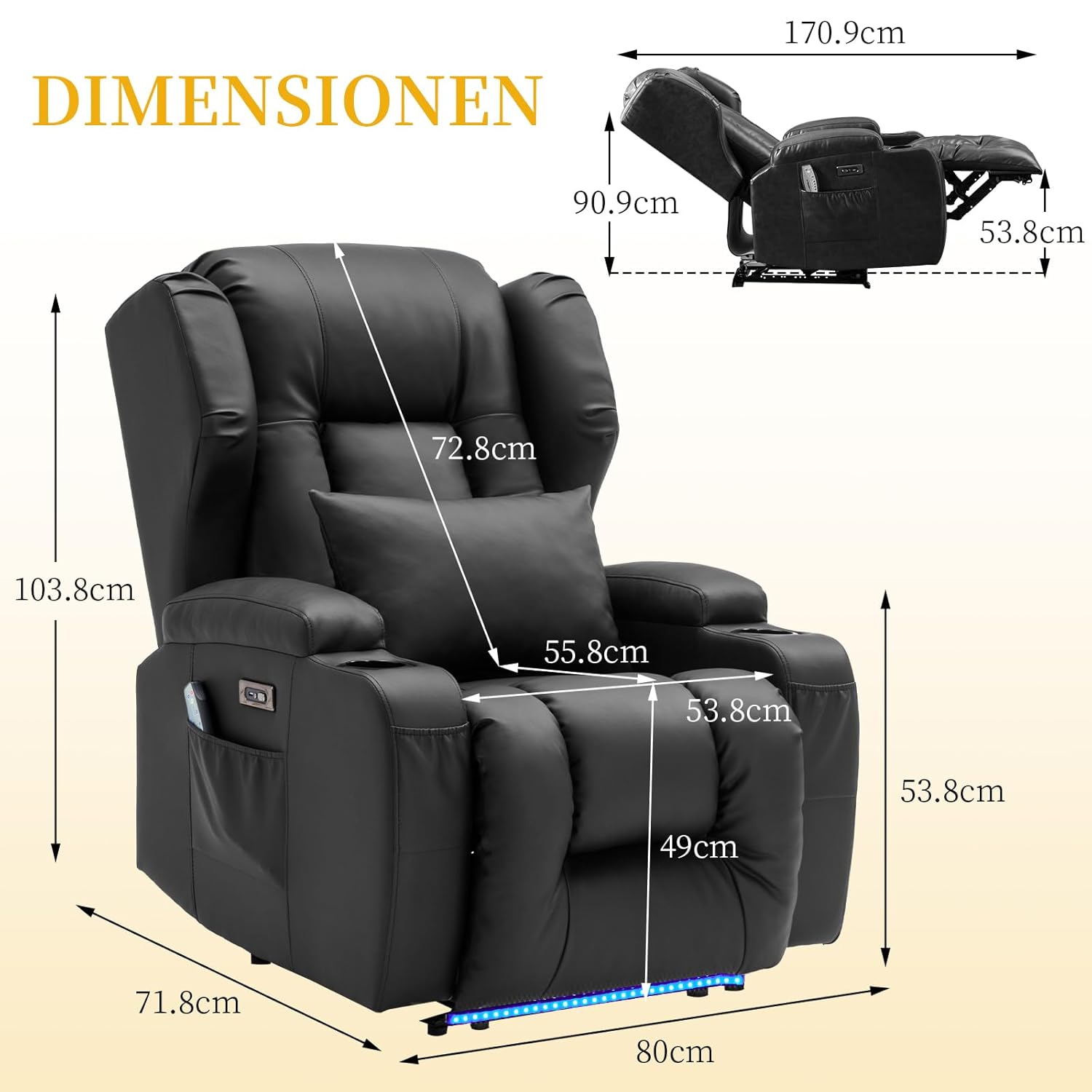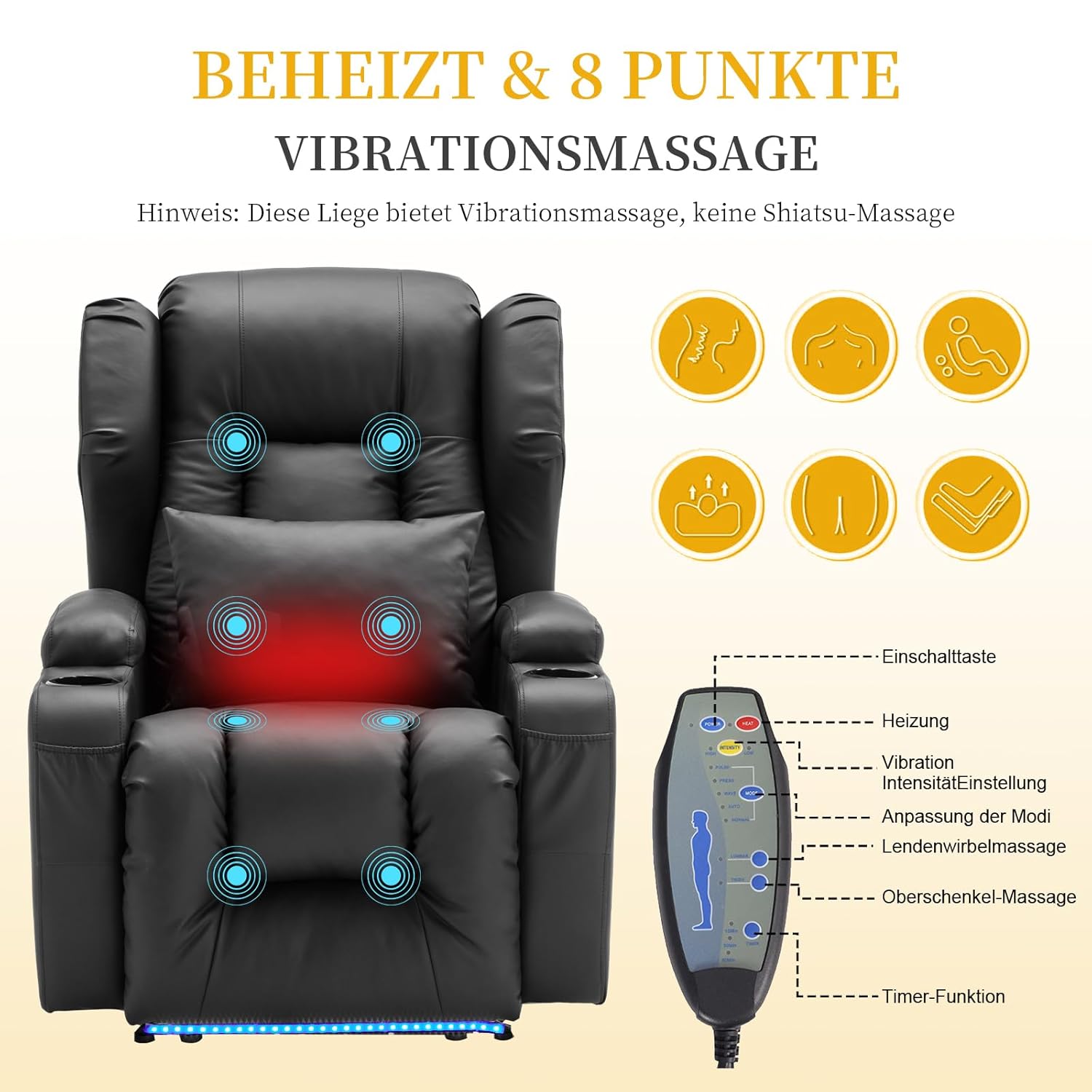 SAMERY Relaxing Sessel – Elektrische Massage-Liege mit Heizfunktion, LED-Beleuchtung & USB-Anschluss für ultimativen Wohnkomfort
