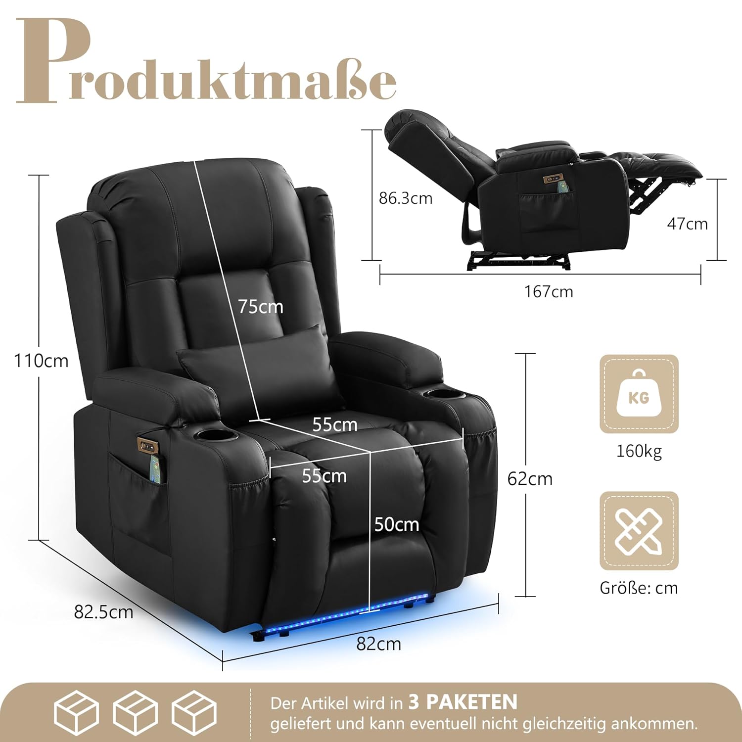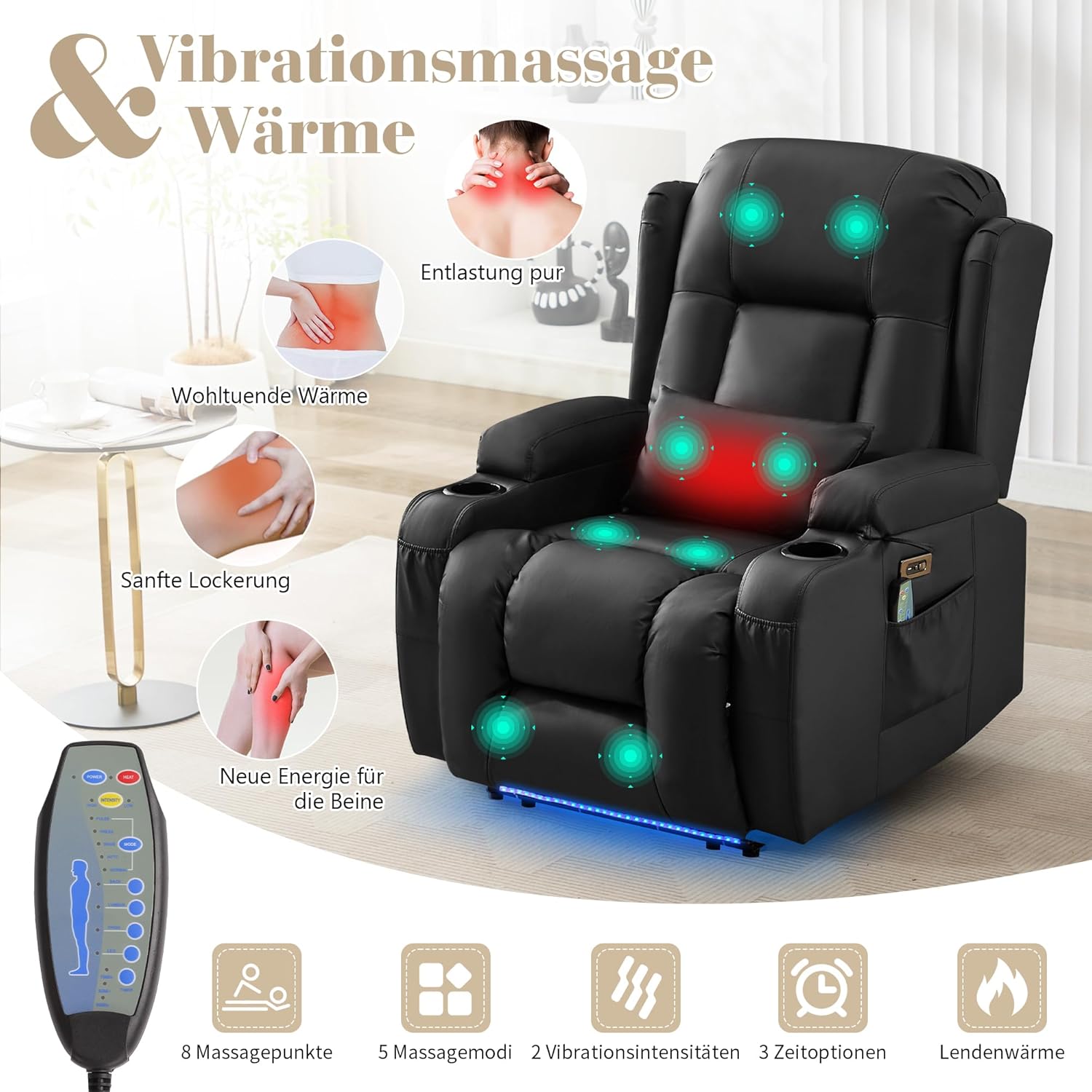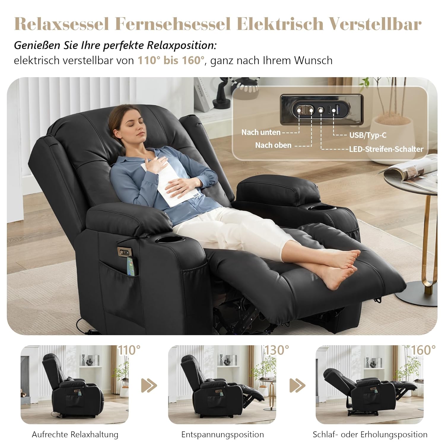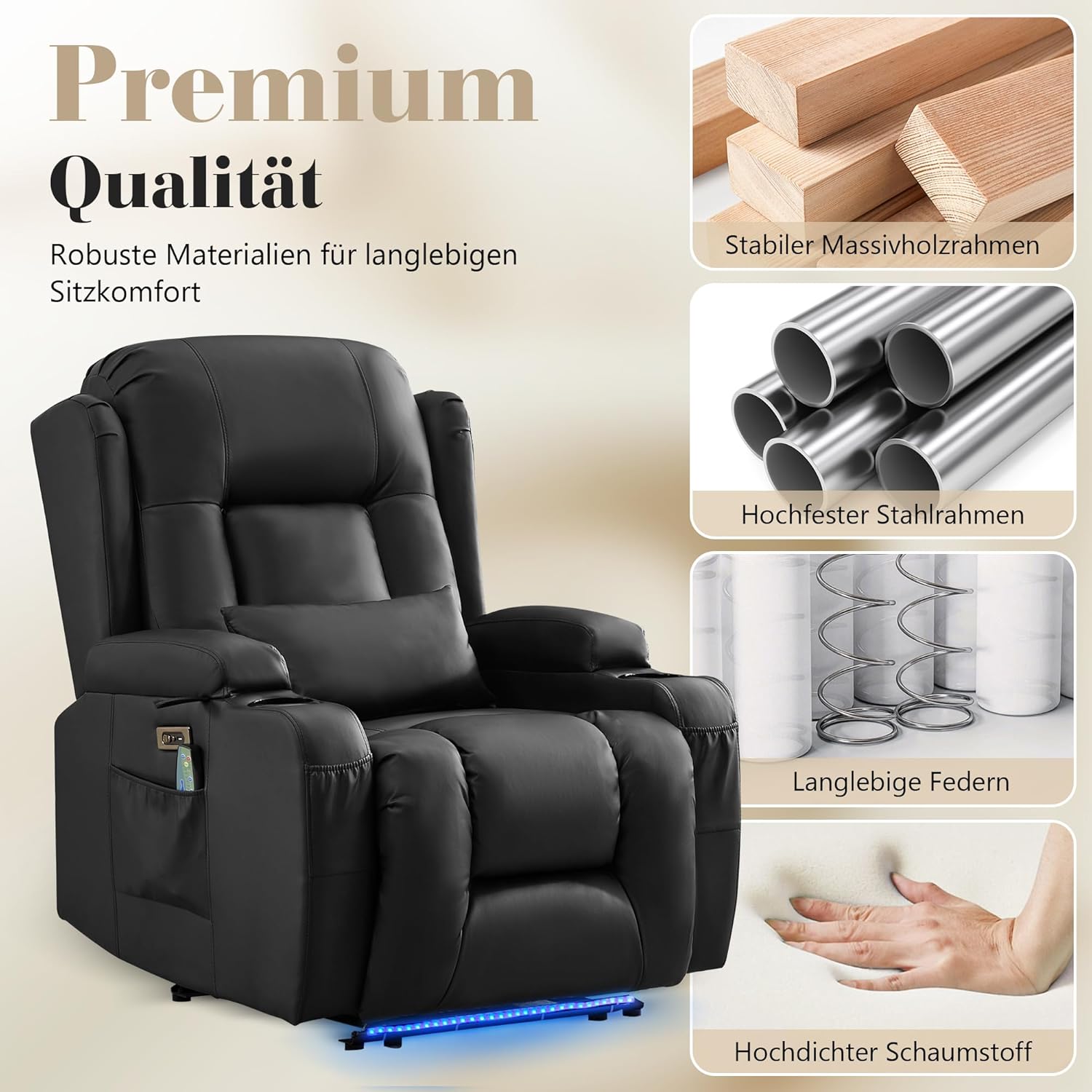 SAMERY TV Chair – Elektrisch verstellbarer Relaxsessel mit Massagefunktion, LED-Ambient-Beleuchtung und Premium-Komfort für Ihr Zuhause