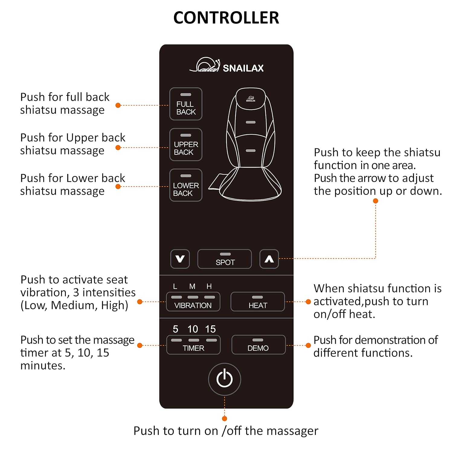 - 3 wählbare Massagezonen: Oberkörper, Unterkörper oder kompletter Rücken