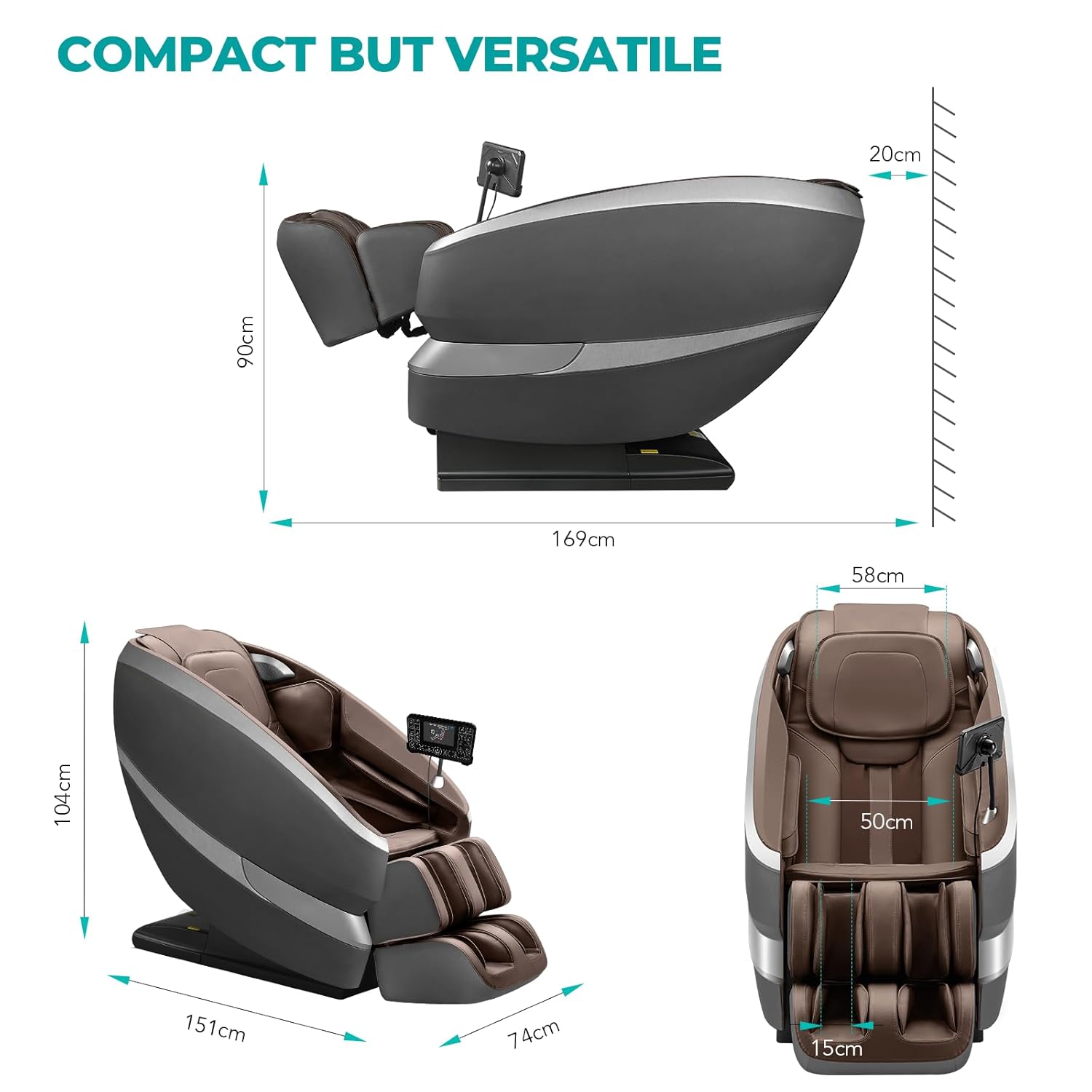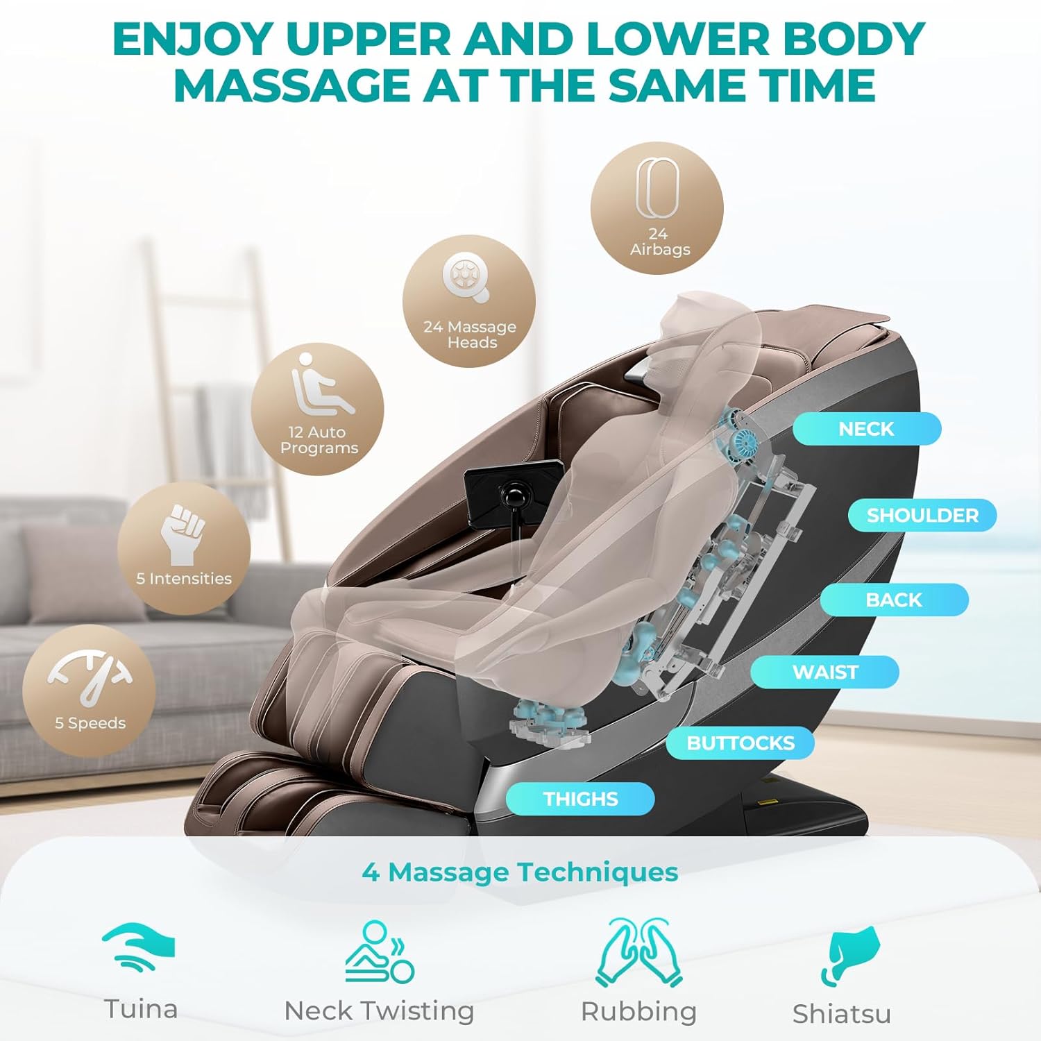 - Exklusive „Tai Chi Hands“ Massage-Technologie mit bidirektionaler Schiene für intensiven Hals- und Schulterbereich