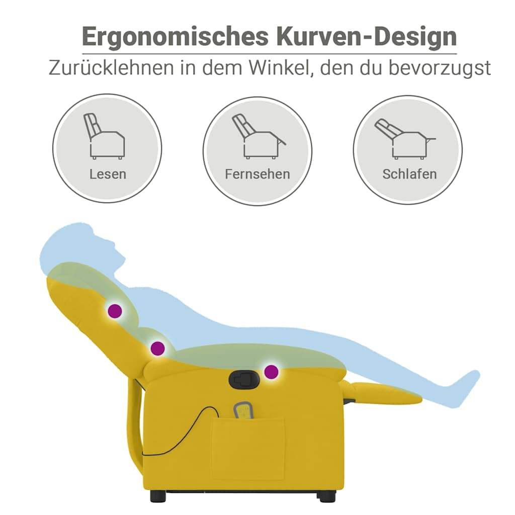 Inmitten des hektischen Alltags sehnen wir uns nach einem Ort der Ruhe, an dem wir Körper und Geist zur Ruhe kommen lassen können. Der vidaXL Massage Chair ist nicht einfach nur ein Stuhl – er ist Ihr persönlicher Wellness- und Erholungsort zu Hause. Mit seiner luxuriösen Polsterung aus samtigem Gelb, der integrierten Vibrationsmassage, der elektrischen Aufstehhilfe und der manuellen Relaxfunktion vereint dieser Sessel modernste Technologie mit zeitlosem Design. Er ist die perfekte Symbiose aus Komfort, Funktionalität und stilvollem Wohnaccessoire.