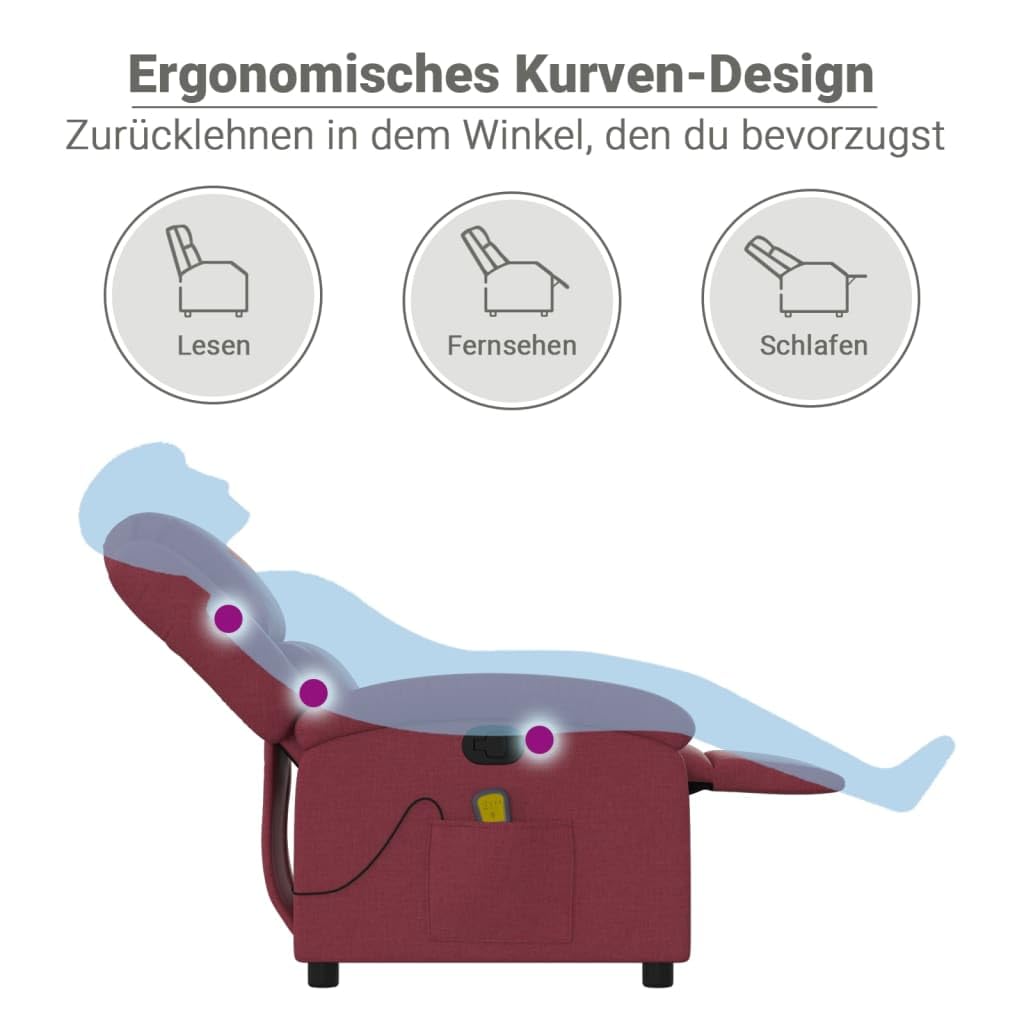Stellen Sie sich einen Ort des Rückzugs vor – ein Platz nur für Sie, an dem der Alltag hinter Ihnen zurückbleibt und jede Anspannung wie von selbst schmilzt. Der vidaXL Massage Chair in edlem Weißwein-Rot ist nicht einfach nur ein Sessel, er ist Ihr persönlicher Wellness-Butler, Ihr privater Ruhepol und die ultimative Investition in Ihr Wohlbefinden. Mit seiner einzigartigen Kombination aus manuellem Liegeverstellmechanismus, gezielter Vibrationsmassage und luxuriöser Polsterung verwandelt dieser Relaxsessel jedes Zuhause in eine private Oase der Entspannung.