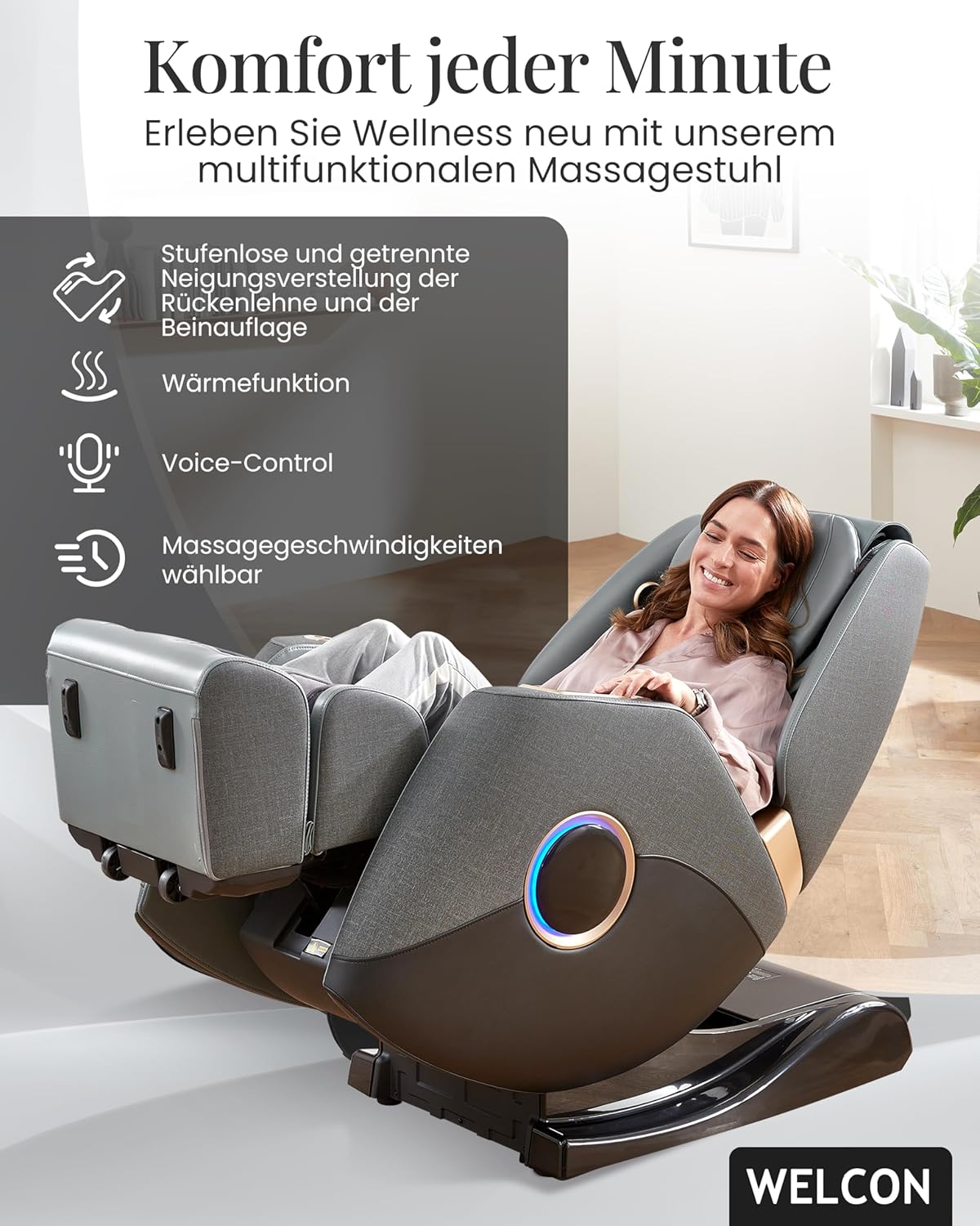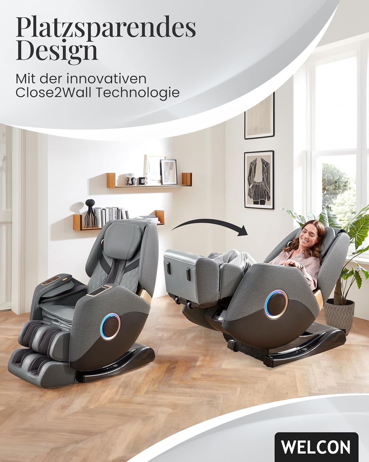 Erleben Sie den Unterschied, wenn Premium-Technologie auf durchdachtes Design trifft. Der WELCON EASYRELAXX PLUS Massage Chair in elegantem Grau/Schwarz ist mehr als nur ein Möbelstück – er ist Ihr persönlicher Wellness-Begleiter, der nach einem langen Arbeitstag, intensiven Training oder einfach zwischendurch zur Ruhe zu kommen, genau das richtige Maß an Entspannung bietet. Hergestellt von einem deutschen Unternehmen mit Sitz in Giesen bei Hannover/Hildesheim, steht dieser 4D-Massagestuhl für höchste Qualität, Zuverlässigkeit und Kundennähe. Jedes Produkt wird aus unserem deutschen Lager versandt und kommt mit einer umfassenden deutschen Bedienungsanleitung, damit Sie sofort in das Wohlfühl-Erlebnis starten können.